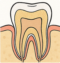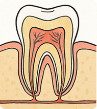 Zdrava pulpa – tkivo, kjer se nahajajo živci in krvne žile.